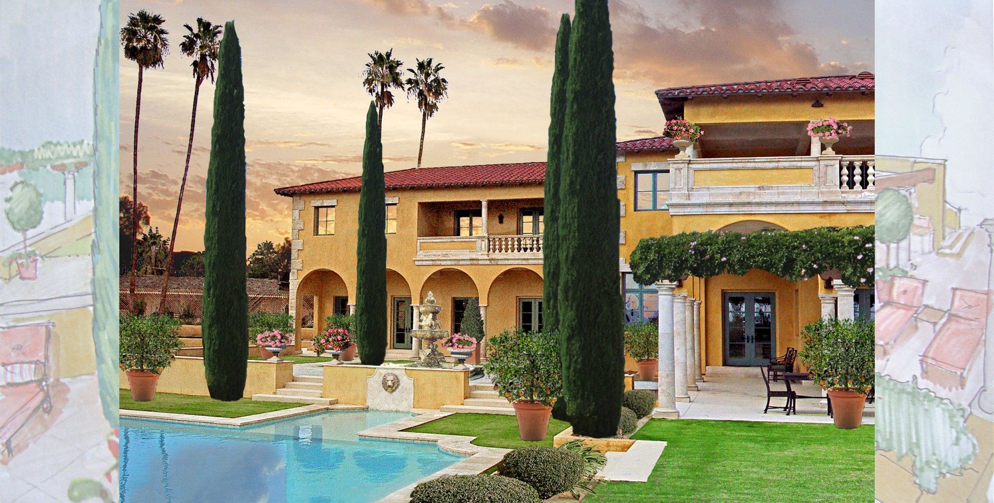 Bryant Design Studio is a full service design firm that will be there through all aspects and phases of the design process. From the concept design of the entire home & gardens, through working drawings, details & all material selections, through construction & site supervision, hardscape and landscape installation, to Interior Design & Decor.